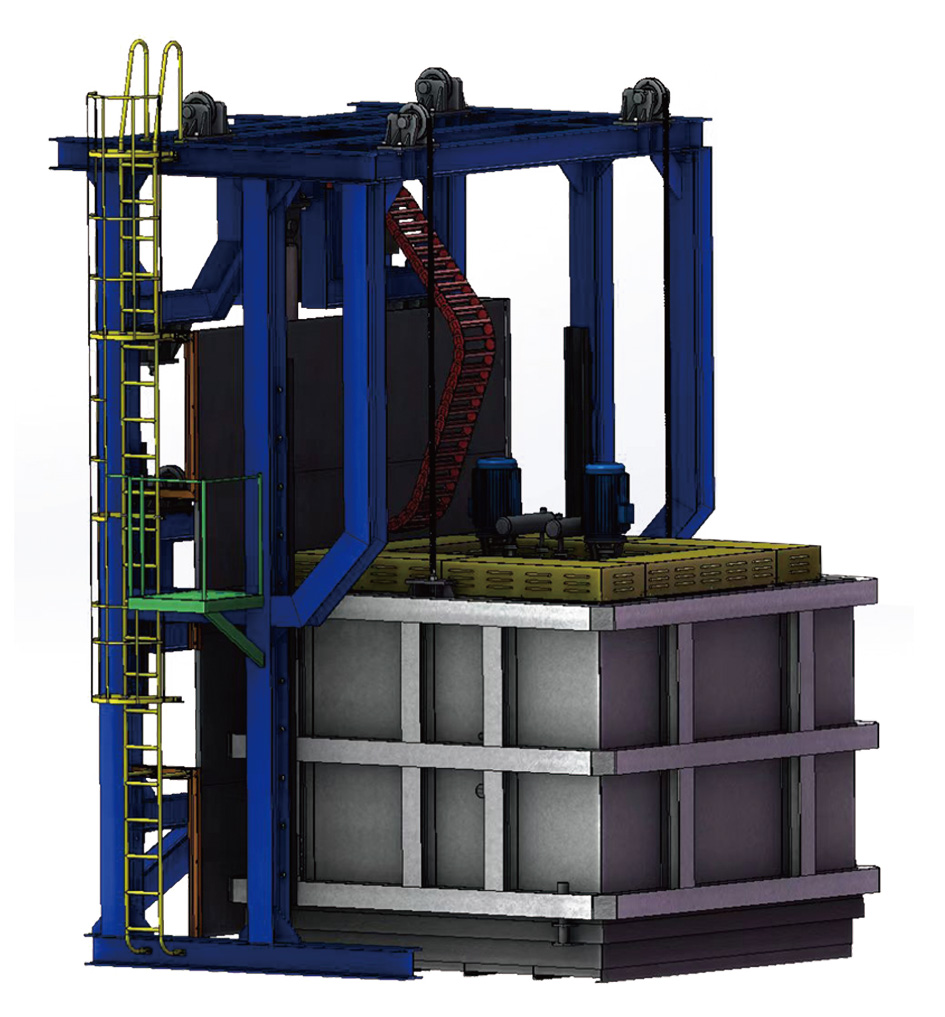 This furnace is applicable for gas carburizing,quenching ,normalizinghardening, annealing processes of many kinds of large parts.It removed trays which used to be repeatedly heated together with parts and cooled, so the energy saving is very remarkable.Rail-mounted FLT charging cart use a better design.When the parts from the heating furnace to the quenching tank,Rail-mounted FLT charging cart can directly transfer the parts after lifting it,The parts can be quenched in a very short time.